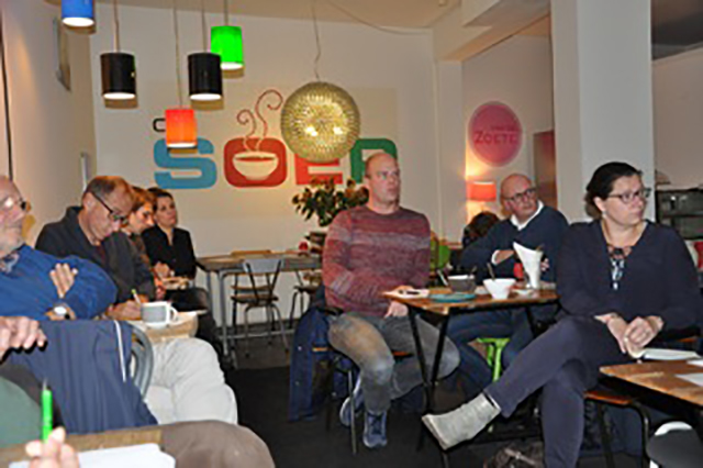 Maar dat er wat moet gebeuren, daar waren alle aanwezigen, bewoners en winkeliers, het roerend met elkaar over eens. Een verzamelpunt in de straat biedt ook kansen werd gezegd, langere openingstijden voor het postkantoor en het inschakelen van de Buurtmus, de bezorgdienst die op de fiets ’s avonds tussen 7 en 9 uur pakjes ophaalt. Bovendien zouden de winkeliers graag na sluitingstijd met hun auto de straat in willen om goederen in – en uit te laden. “Als wij een apparaat van 2000 euro bij een klant thuis moeten bezorgen, dan willen we dat graag zelf wegbrengen. Maar dat moet dan wel na zes uur ‘s avonds mogelijk zijn. Want dan is onze klant thuis en kunnen wij bij het installeren die service geven wat nu juist de meerwaarde van een fysieke winkel is”, aldus Jeroen Idsinga van de mooie kookwinkel BijdeHeren.
