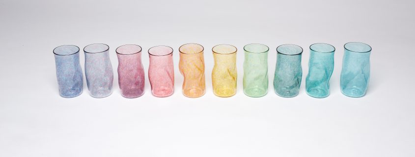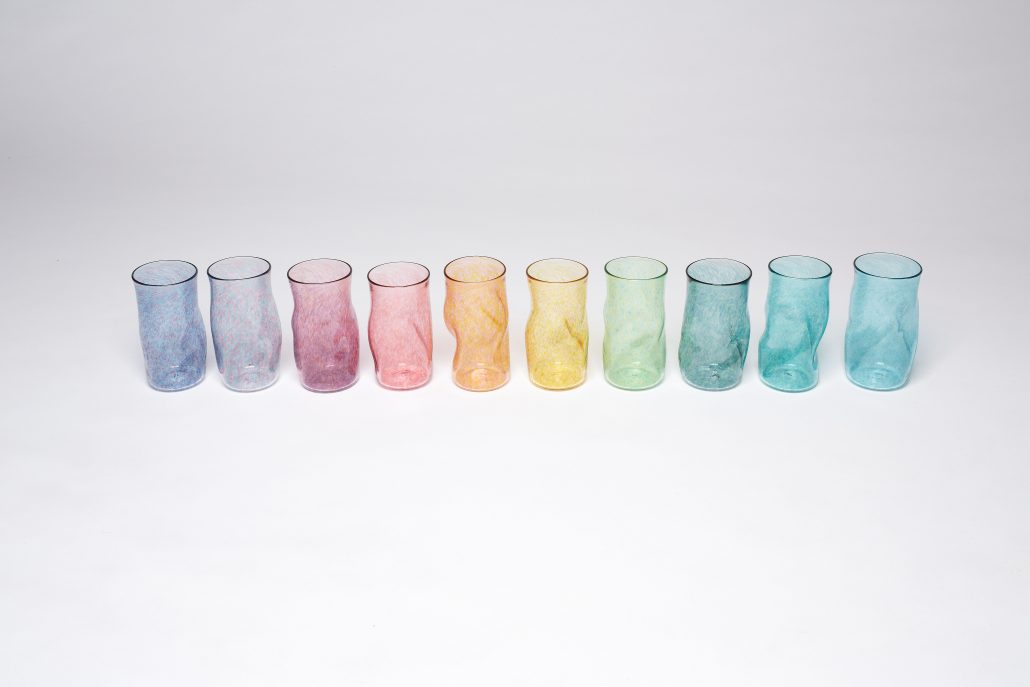 Bibi Smit is een Nederlandse glaskunstenaar en ontwerper die bekend staat om het maken van objecten en installaties die de patronen en ritmes onderzoeken die worden veroorzaakt door beweging in de natuur. Het harde, strakke glas van Smit tegenover de zachte plaids en kussens van orange or red vormen een mooie tegenstelling.